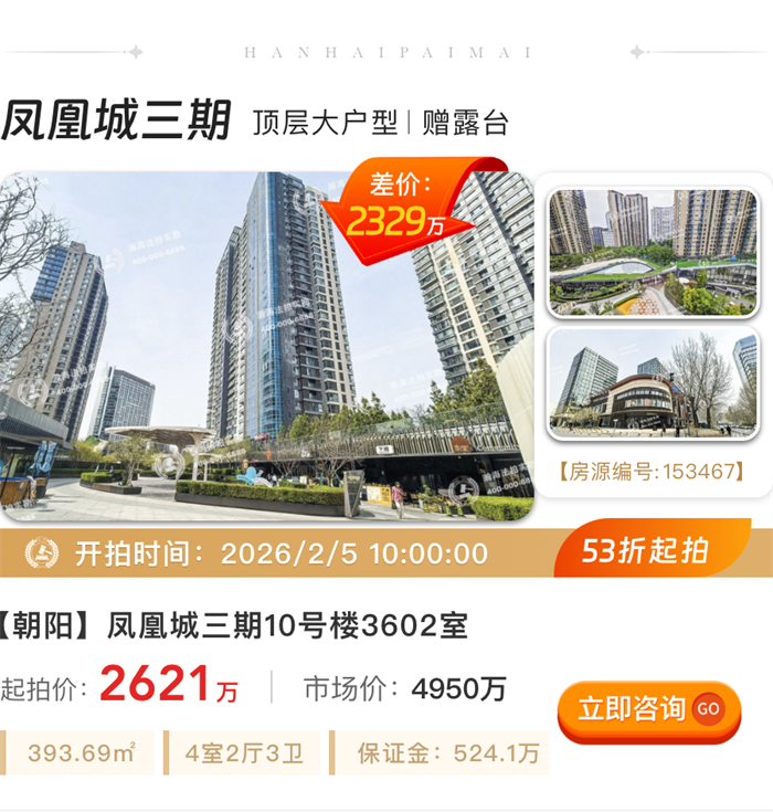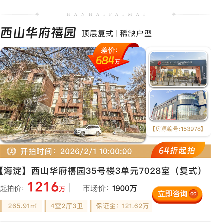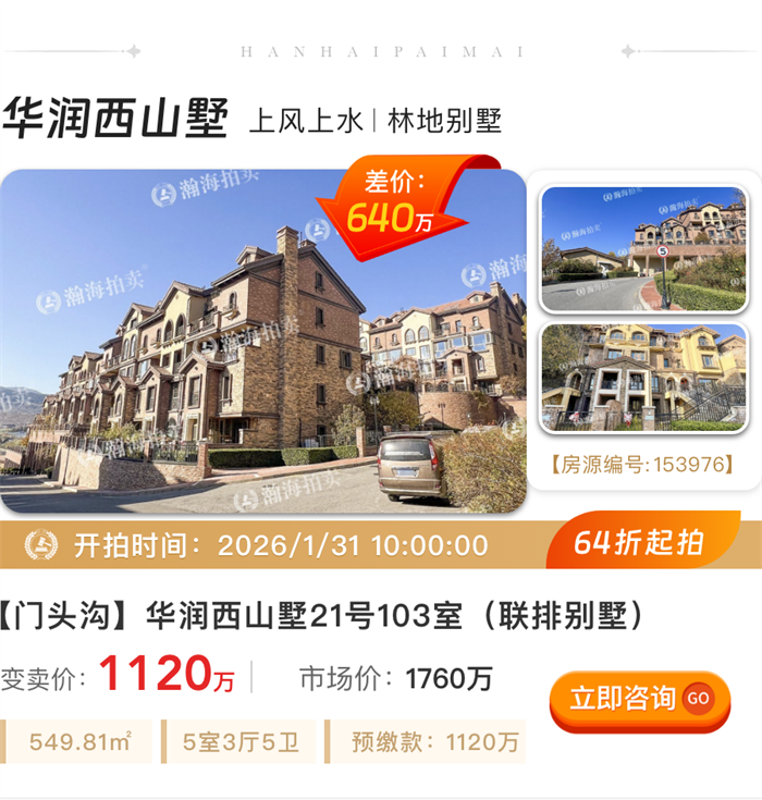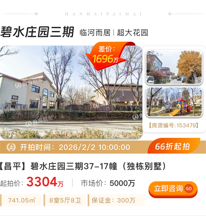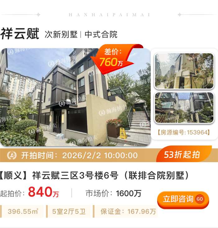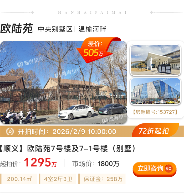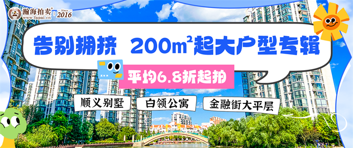 告别拥挤,200㎡起大户型专辑!顺义别墅、白领公寓、金融街大平层平均6.8折起拍