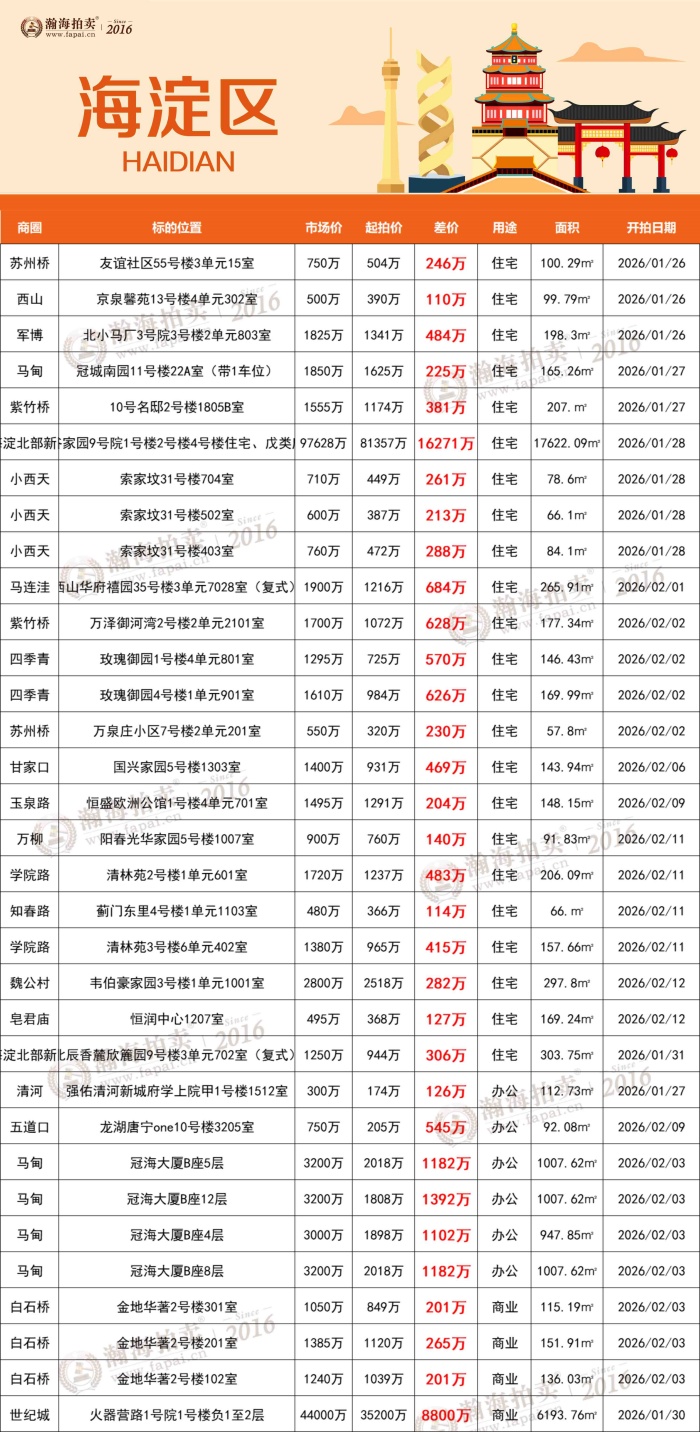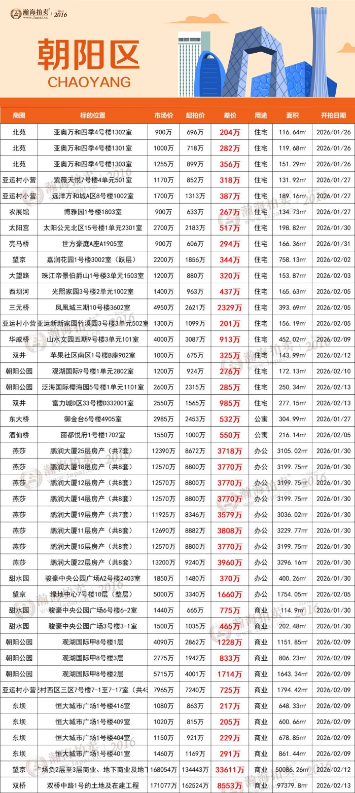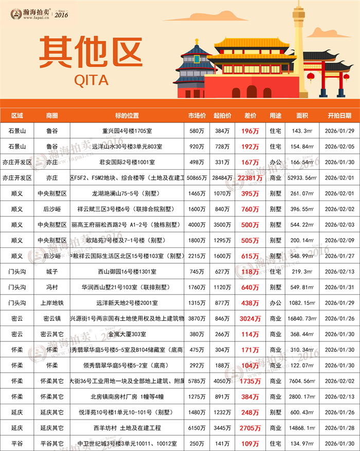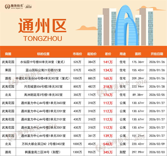 告别拥挤,200㎡起大户型专辑!顺义别墅、白领公寓、金融街大平层平均6.8折起拍